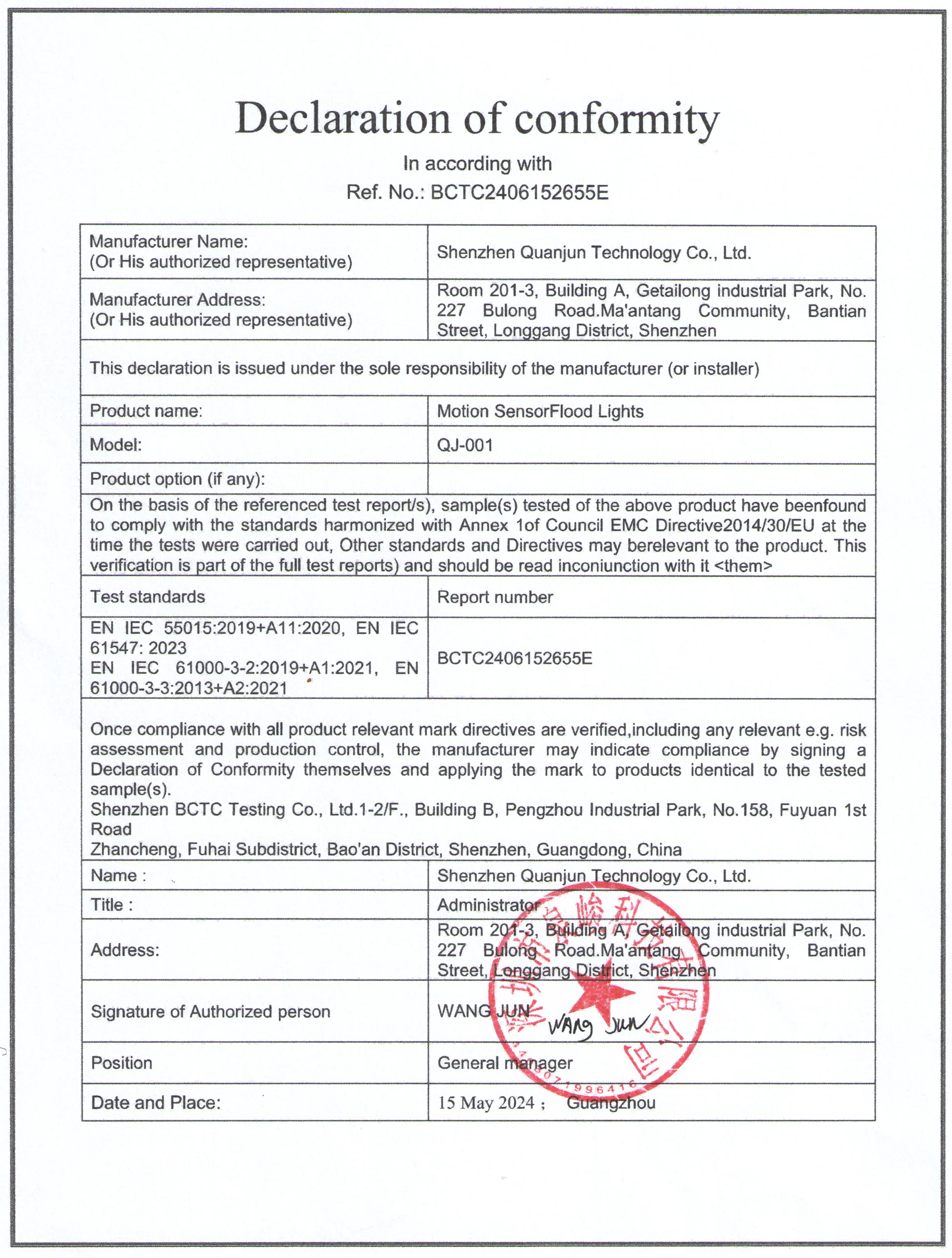 DOC of Motion Sensor Flood Light