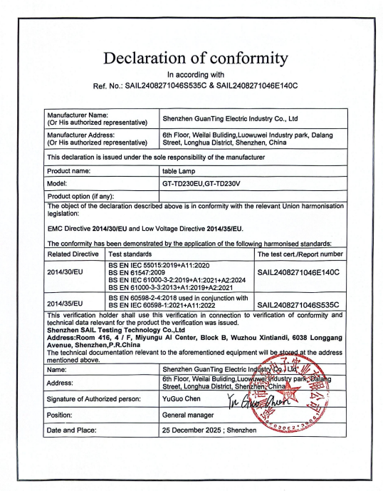 DOC of Table Lamp GT-TD203EU, GT-TD203V